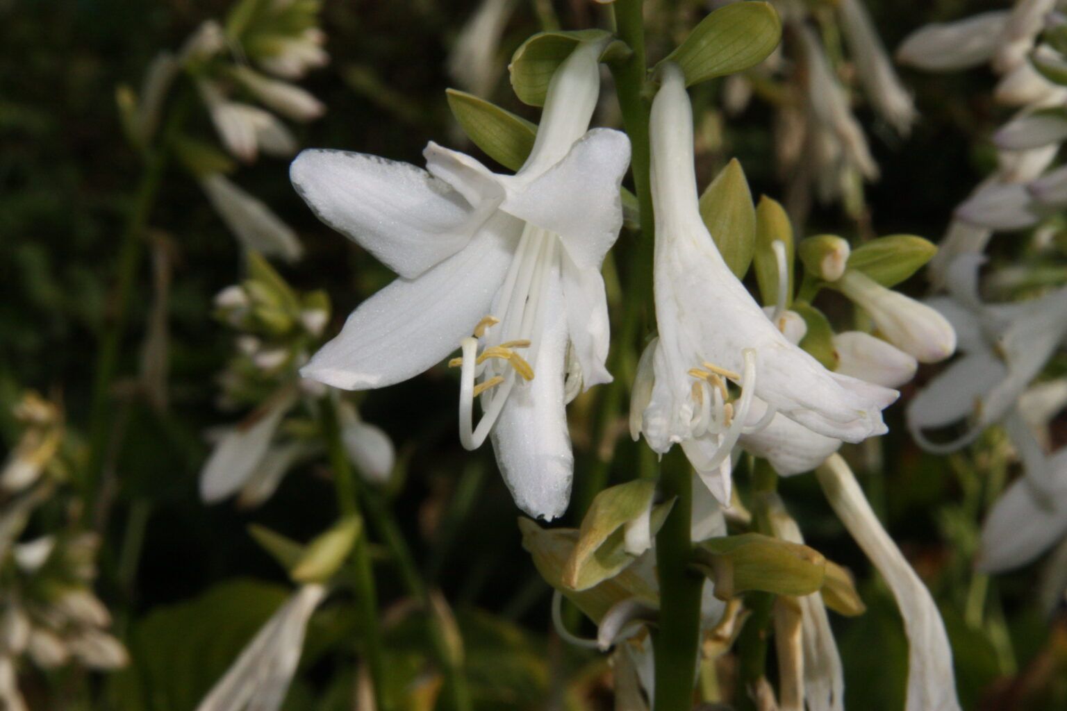 Die Blütenstängeln erscheinen von August bis September mit einfachen, weißen, glockenförmigen, gut duftenden Blüten.