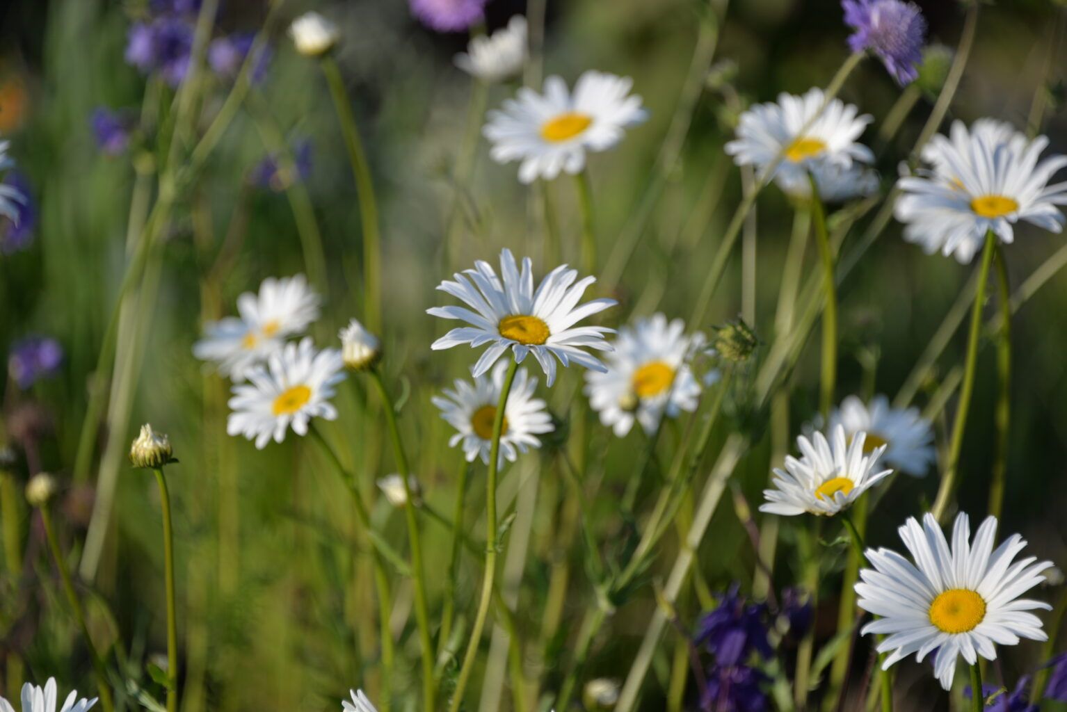 Klassische Wildstaude, fröhliche, weißen Blüten mit großen gelben Auge, leuchten auch an tristen Tagen, für mageren, nicht zu trockenen Standort.