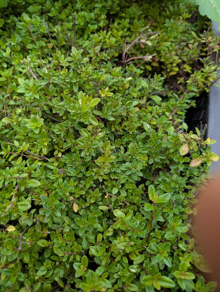 flach wachsende, immergrüne Gehegepflanze, auch Heil – und Gewürzpflanze.